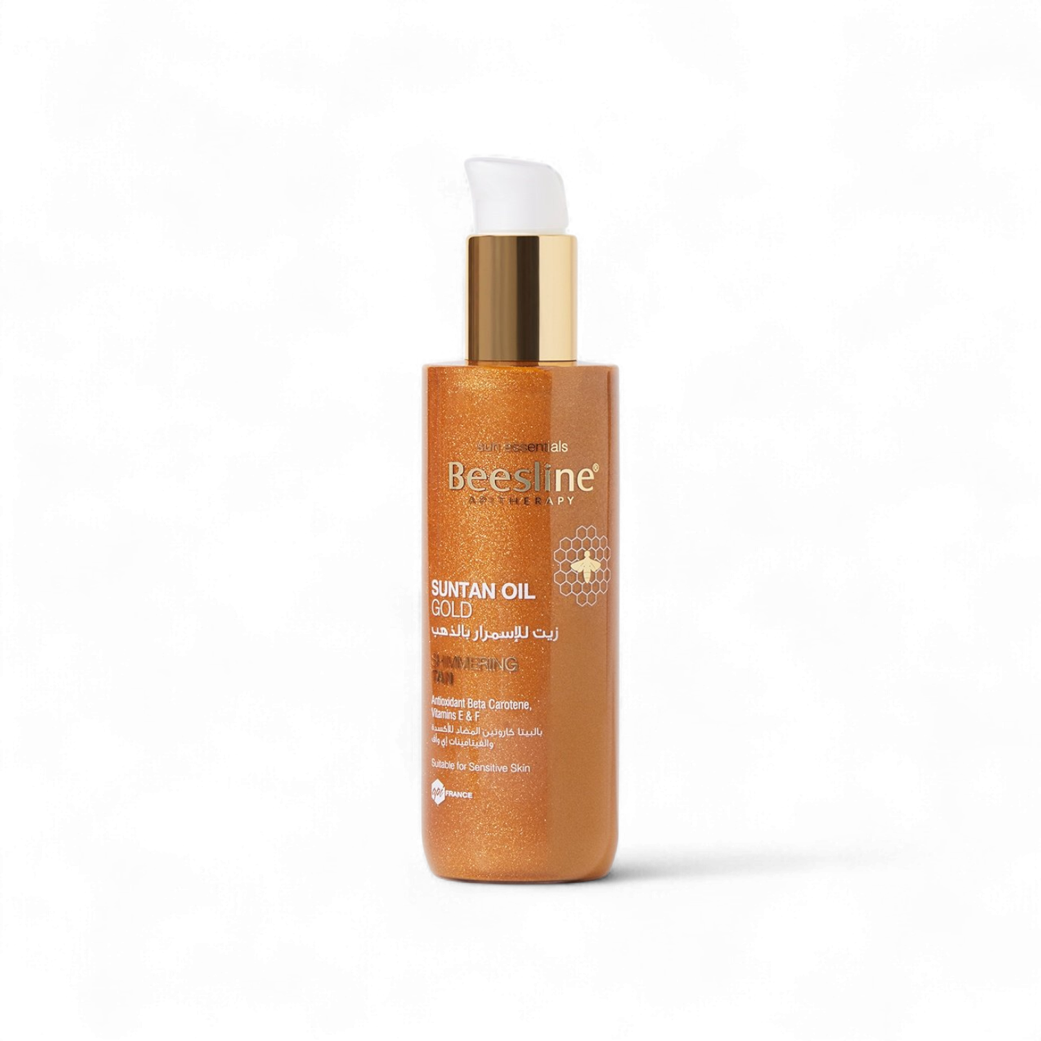 Beesline Suntan Oil Gold is a luxurious natural tanning oil that enhances your skin’s glow while promoting a deep, even, and long-lasting tan. Infused with beeswax, gold shimmer, and a blend of nourishing natural oils—including sweet almond, sesame, sunflower, coconut, and wheatgerm oil—it deeply hydrates and protects the skin.