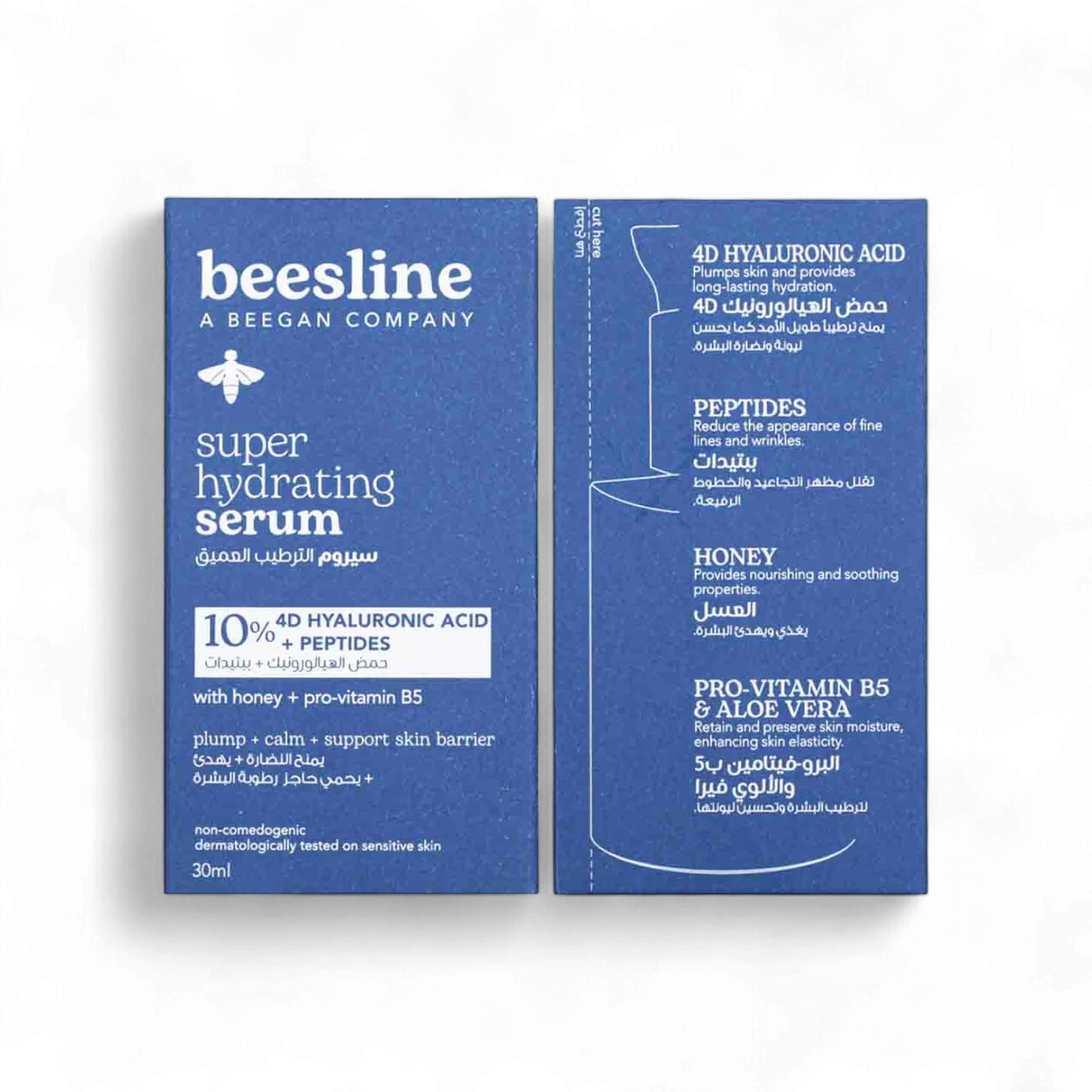 Beesline Super Hydrating Serum delivers deep and long-lasting hydration for smooth, plump, and radiant skin. Infused with 10% 4D hyaluronic acid and peptides, it strengthens the skin barrier, locks in moisture, and soothes dryness while promoting elasticity. Enriched with honey and pro-vitamin B5, this lightweight serum absorbs quickly and leaves the skin calm, refreshed, and visibly hydrated. Suitable for all skin types and ideal as the first step in your daily skincare routine.