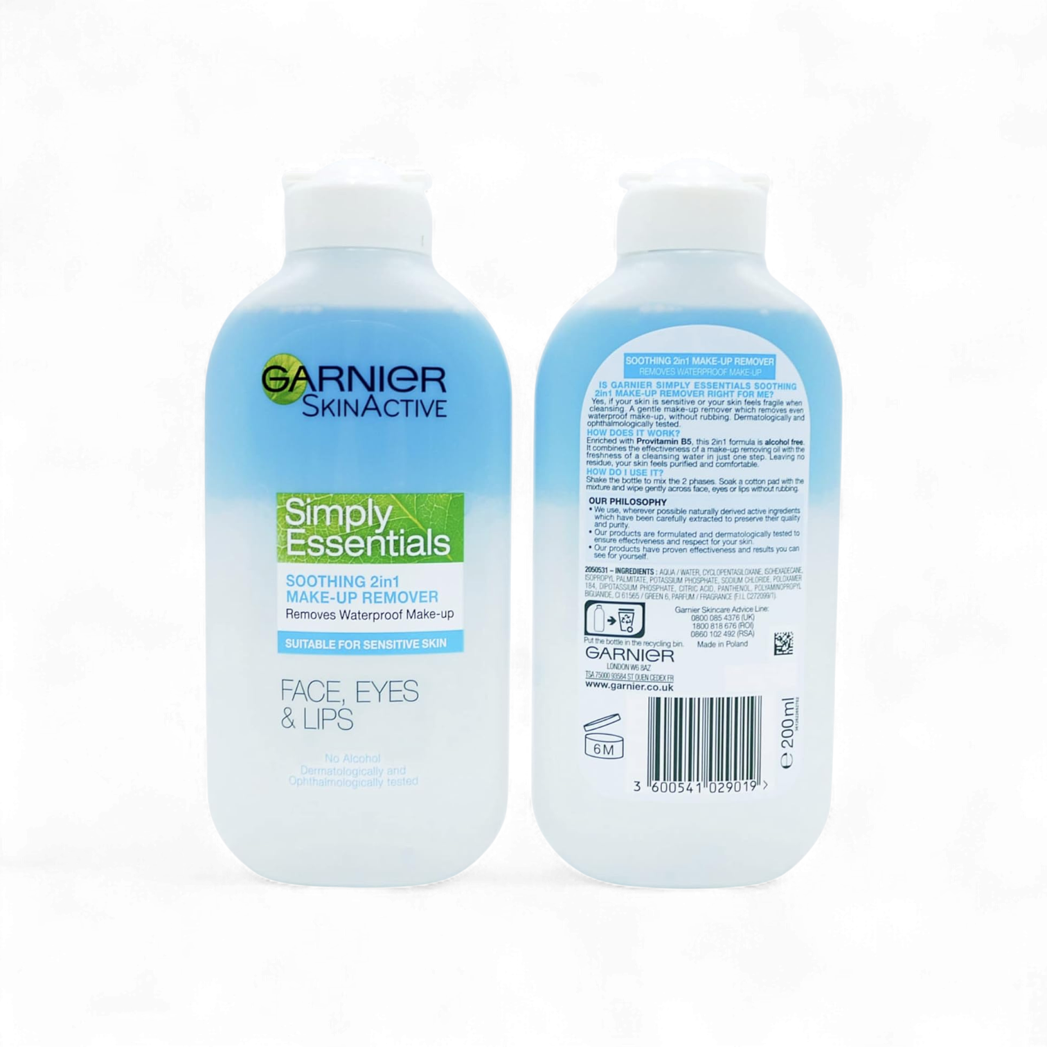 Discover gentle, effective cleansing with Garnier Skin Naturals Simply Essentials 2-in-1 Make-Up Remover – 200ml. This bi-phase formula combines nourishing oils—including black seed oil, sesame oil, and rosemary extract—to dissolve makeup while leaving skin hydrated and refreshed. It lifts away impurities from the face, eyes, and lips without harsh rubbing, restoring comfort and softness.