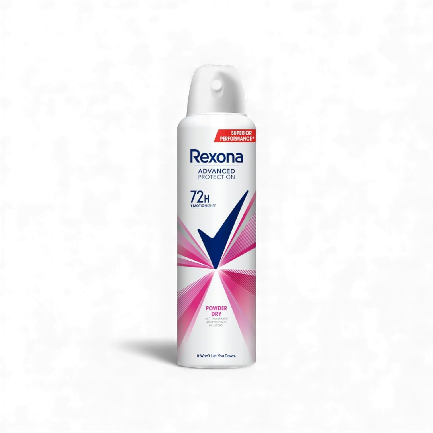 Rexona Advanced Protection 72H Powder Dry Deodorant Spray provides long-lasting freshness and dryness for up to 72 hours. Its advanced MotionSense™ technology activates with every move, delivering bursts of clean powdery fragrance throughout the day. The antiperspirant formula offers superior sweat and odor protection, keeping your underarms dry, soft, and comfortable even during intense activity. Dermatologically tested, alcohol-free, and gentle on the skin, it’s ideal for daily use and all-day confidence.