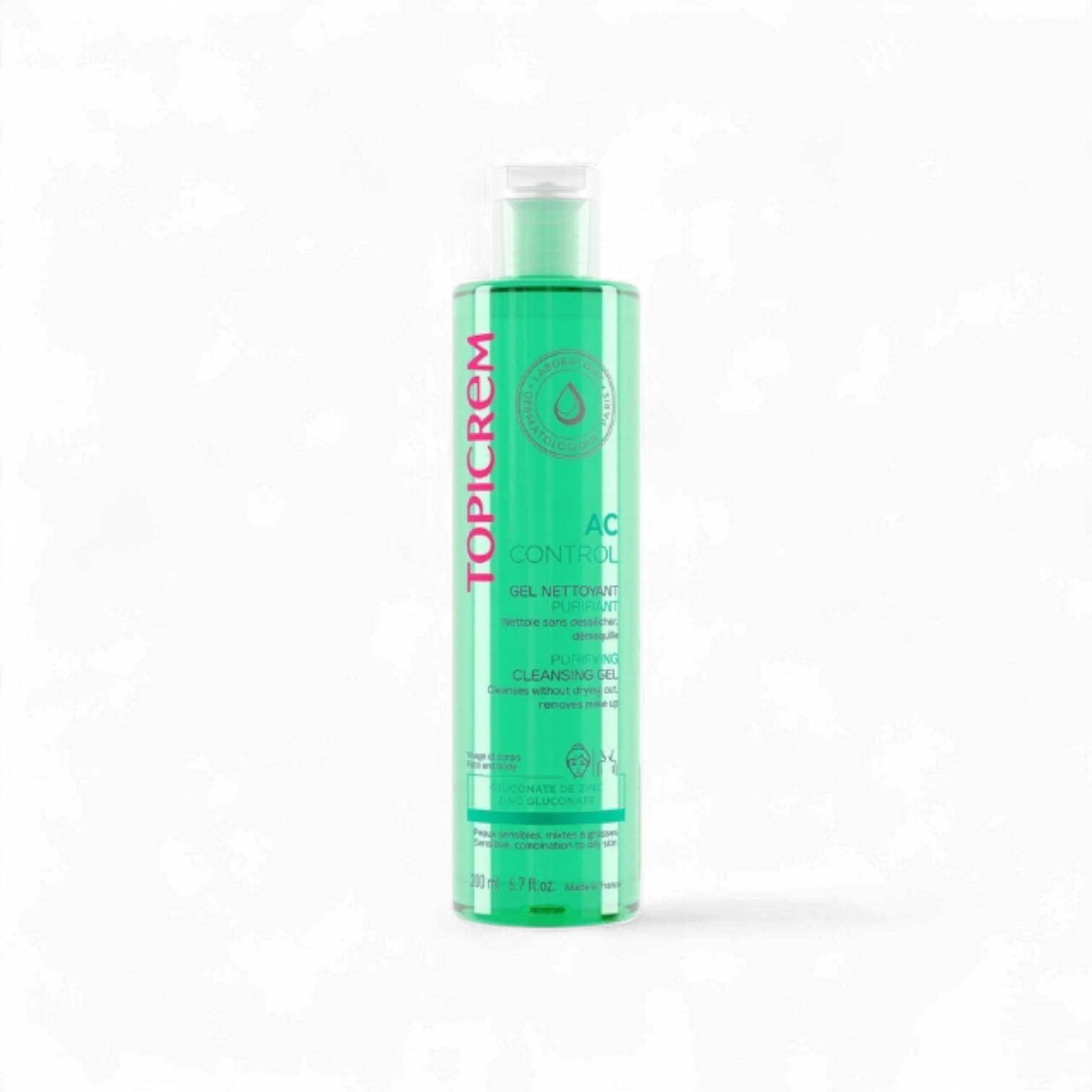 Topicrem AC Purifying Cleansing Gel is a gentle yet effective daily cleanser formulated for oily and acne-prone skin. Enriched with zinc gluconate and purifying agents, it removes excess oil, impurities, and traces of makeup without drying or irritating the skin. Its soap-free formula helps regulate sebum production, leaving the skin clean, fresh, and balanced. Dermatologically tested and suitable for both face and body. Made in France.