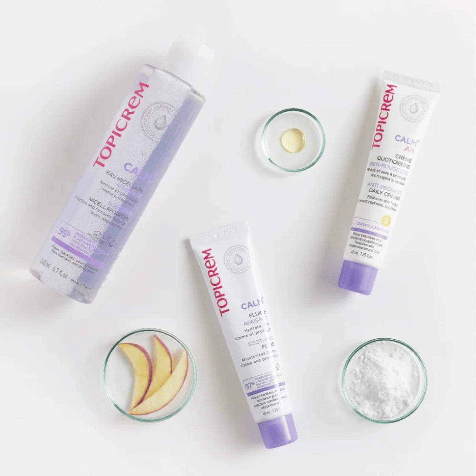 كريم توبيكريم المهدّئ والمضاد للاحمرار هو كريم يومي للعناية بالبشرة الحساسة والمائلة للاحمرار. يحتوي على خلاصة نبات السنسيلا الآسيوية التي تعمل على تهدئة التهيّج وتقليل الاحمرار وتعزيز حاجز البشرة الطبيعي. يمنح حماية عالية من أشعة الشمس بمعامل حماية من الشمس ٥٠، مما يساعد على الوقاية من الاحمرار المتكرر ويحمي البشرة من العوامل البيئية الضارّة. تركيبته خفيفة وغير دهنية، تمنح البشرة راحة فورية ولمسة ناعمة ومظهرًا موحّد اللون طوال اليوم. يُصنع في فرنسا