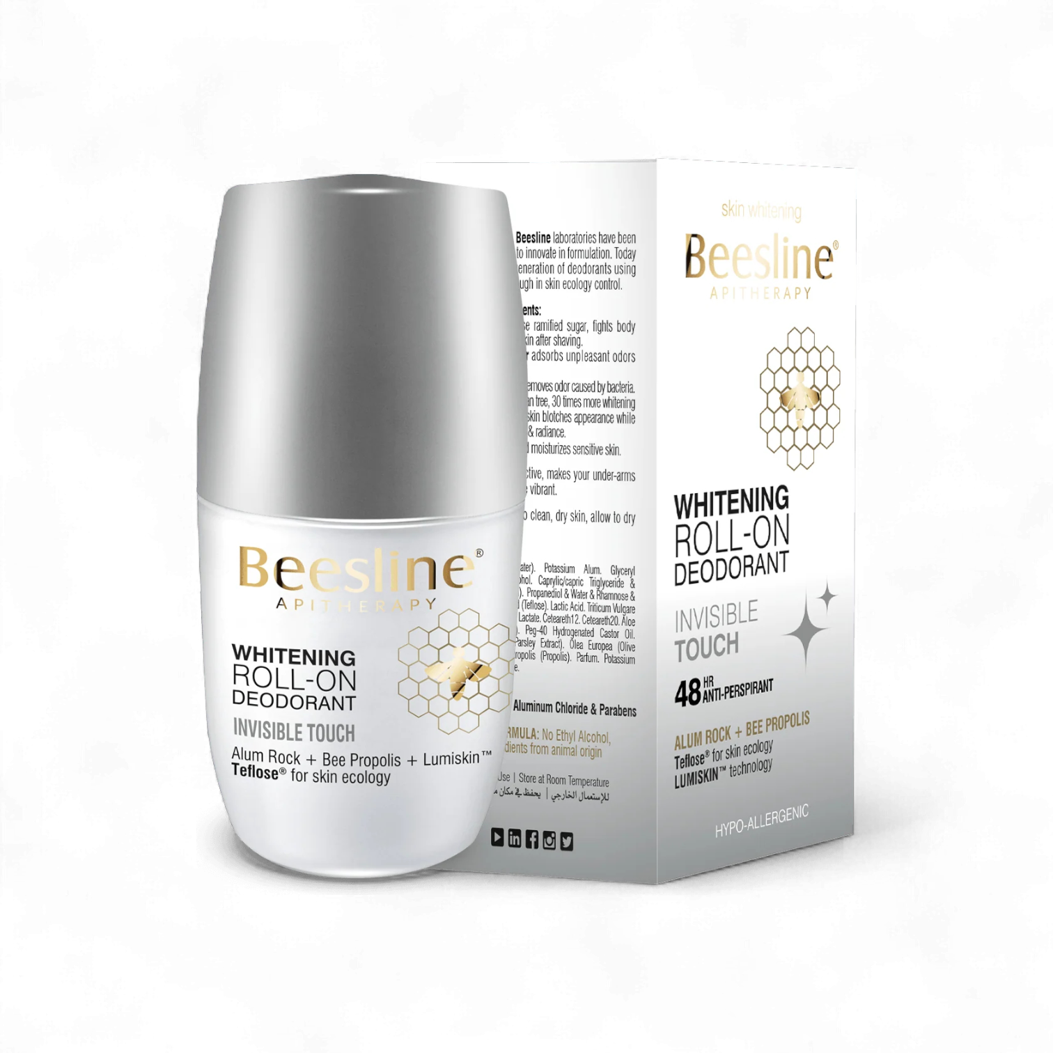 Beesline Whitening Roll-On Deodorant Invisible Touch is an innovative and safe 48-hour antiperspirant deodorant that provides effective protection against body odor while keeping the skin soft and smooth. It absorbs moisture, soothes the underarms, and brightens the skin tone for clean, fresh, and radiant results.